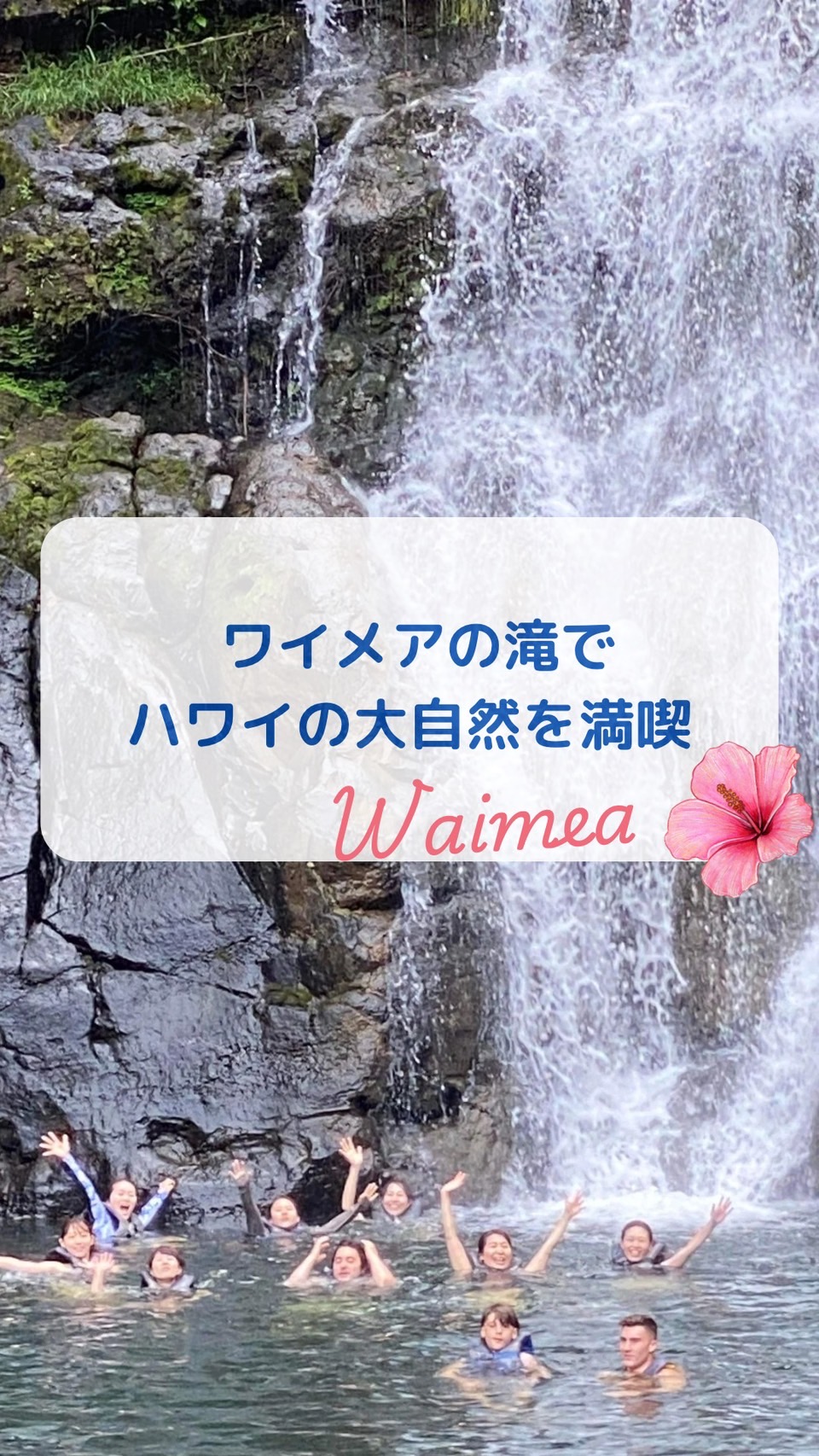 30分ほど歩いた先には、美しい ワイメアの滝 💦 滝つぼでは水遊びもでき、子どもから大人までリフレッシュできるスポット!