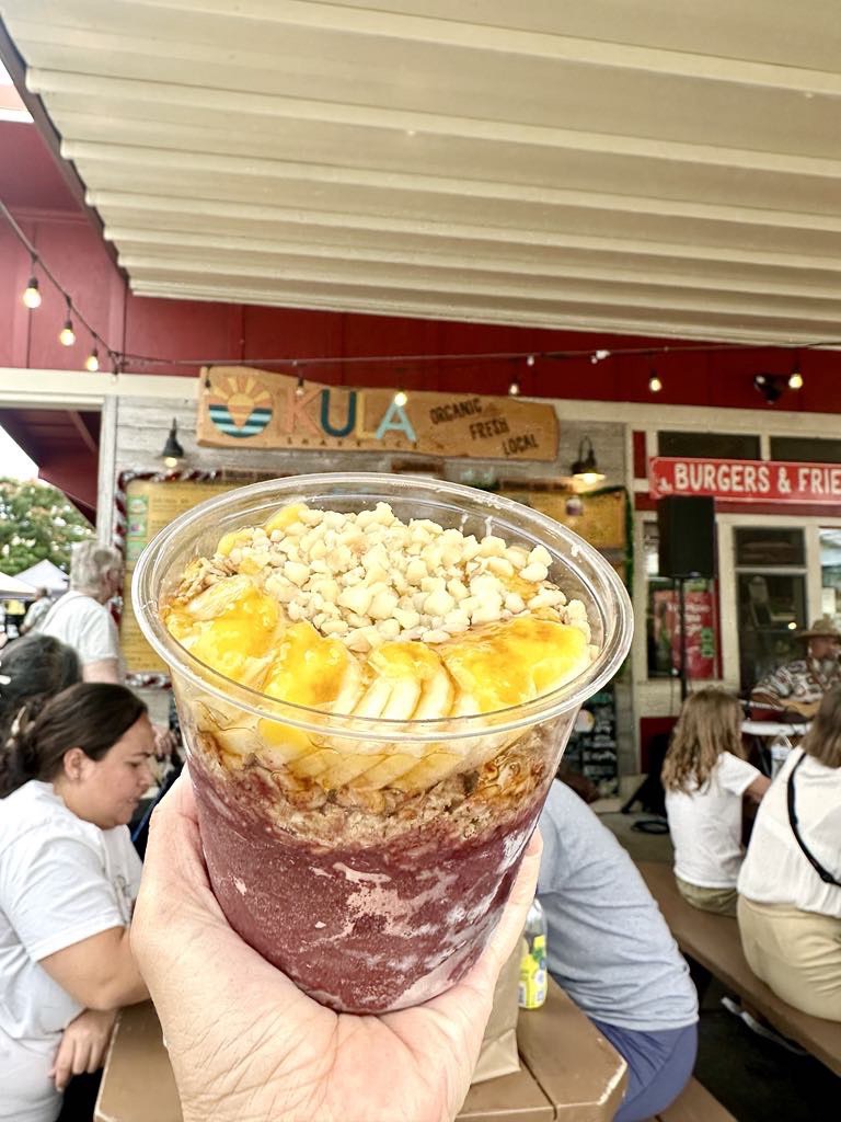 ローカルのパパイヤ、パッションフルーツ、バナナ、スターフルーツなど、太陽の恵みが棚の上にたくさん😍☀️ その中でも大好きなのが、Marketの前にあるオーガニックカフェのポイアサイボール✨ ポイ(Poi)というのは、タロイモ... -